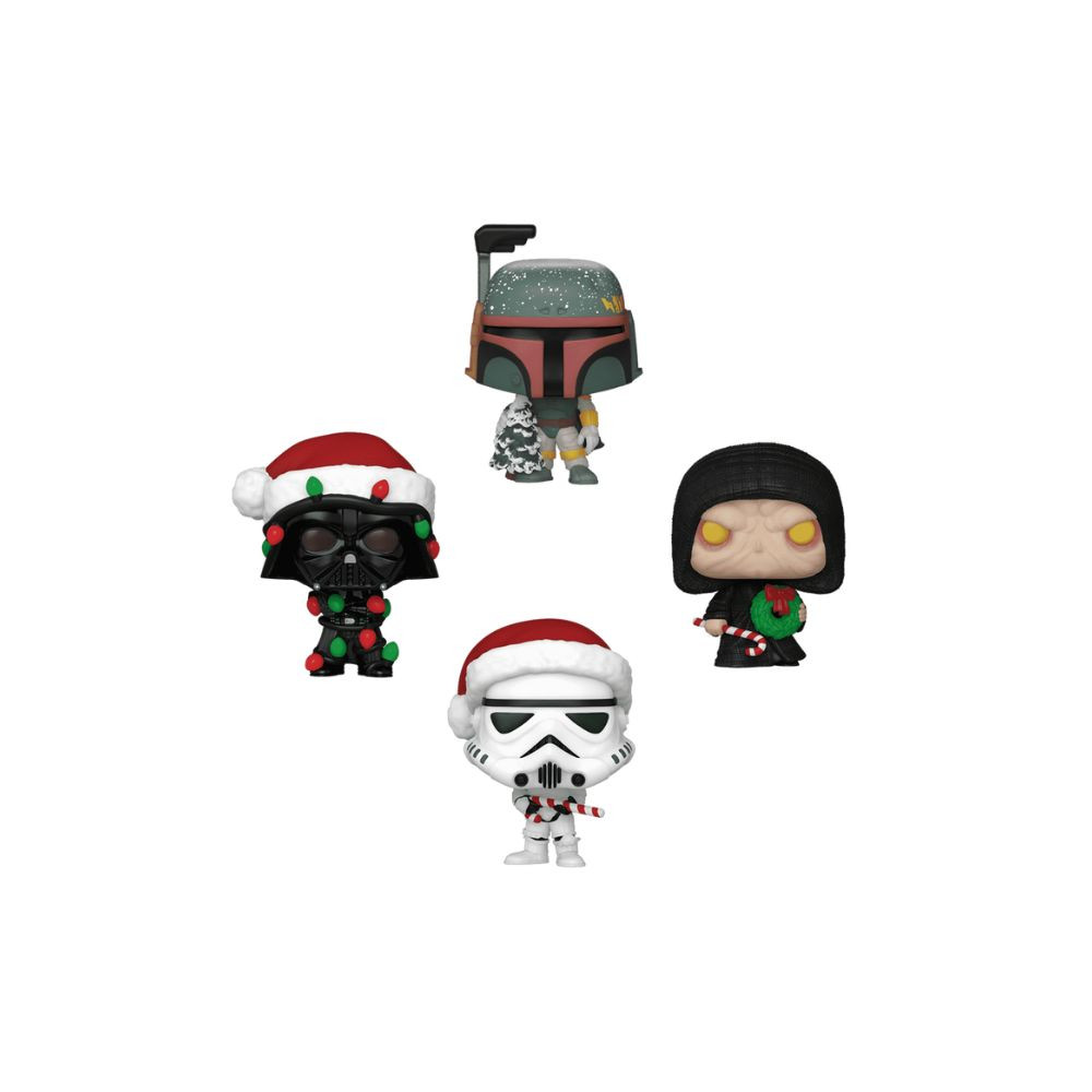 Stuff your stockings with the Star Wars™ Pocket Pop! Holiday Box! This 4-pack features Pocket Pop! Darth Vader™, Pocket Pop! Emperor Palpatine™, Pocket Pop! Boba Fett™, and Pocket Pop! Stormtrooper™, all in adorable, holiday-themed ensembles. All four Pocket Pops! come in a festive, tree-shaped box. This Holiday Box set will make the perfect gift for loved ones—or for yourself! Make room for the Dark Side™ in your Star Wars™ collection with this Pocket Pop! Holiday Box set! Vinyl figures are approximately 1.8 in (4.6 cm) tall.